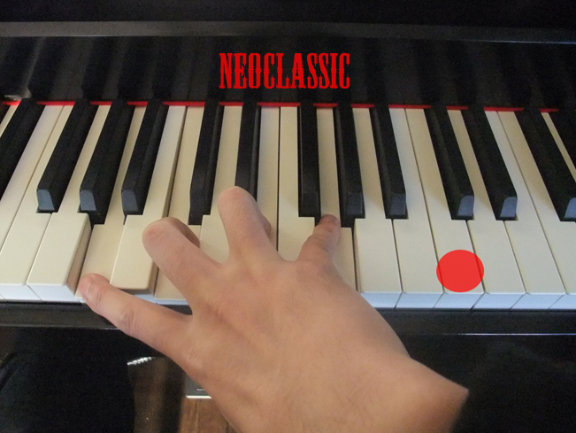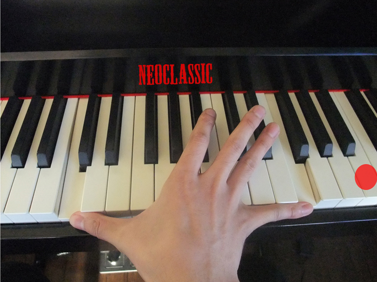 (私も指は長い方ですが、それでもド~ファ(11度)までしか届きません、赤い丸が14度(シ)です)